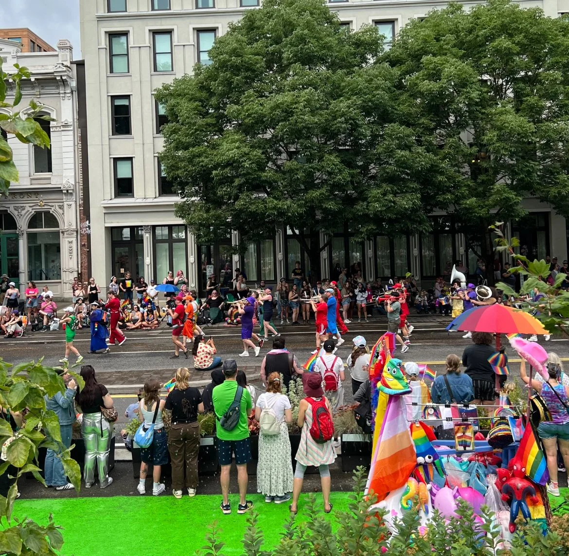 Another thing I was also not expecting, but it was the best surprise. The official Pride Parade ran right in front of the park, and I could watch it from my booth. Pride parades always make me tear up. I lived/worked in San Francisco in my 20’s and I would walk by the parade every year on my way to work. This was pre coming out, and people living their truest lives out loud makes me feel all the feels. I needed open queer people in my childhood to let me know it was ok to be me, and when I see that now, it heals a little bit of my inner child.